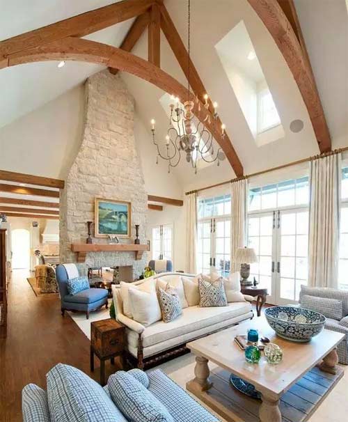 大別墅就非得金光燦燦?喜歡低調一些的人就比較適合這樣的客廳吊頂了。