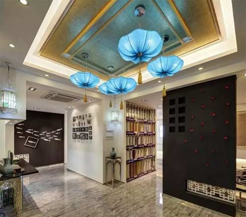 花瓣吊頂很常見,不過很多都是一些水晶吊頂,要想清新脫俗,這個吊頂設計倒是很不錯哦!
