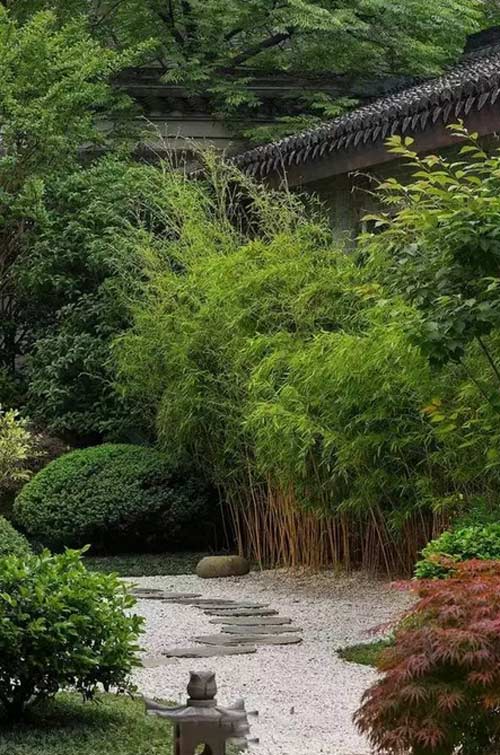 綠苔在青石上,竹子在小徑邊,白墻黛瓦與綠色植物遙相輝映,更增添了些許自然朦朧的禪意。