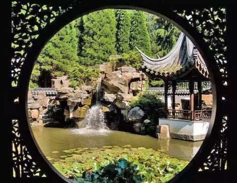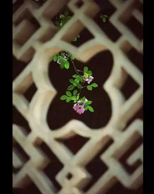 一扇月拱門,抬腳跨過天圓地方,一扇雕花窗, 窗外花正放。