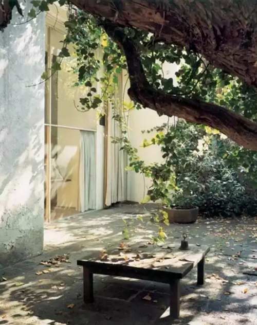 院中擺放一個藤椅,午后的陽光下藤椅小坐,愜意生活大致如此。
