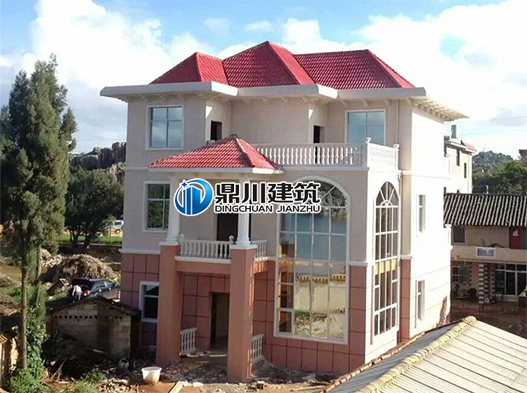 該施工案例較為完整的還原了效果圖的外觀。同時,客戶在施工過程中,根據(jù)自己的喜好,調(diào)整了外墻的顏色搭配。二三層采用米色外墻,顯得經(jīng)典大氣;而一層采用橘紅色外墻,與屋頂顏色相呼應(yīng),成功的打造了一種舒適的視覺效果。
