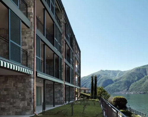 意大利萊澤諾199萬(wàn)人民幣:科莫湖畔一室公寓,湖泊邊景觀房、室內(nèi)裝飾是天然石材和木材。