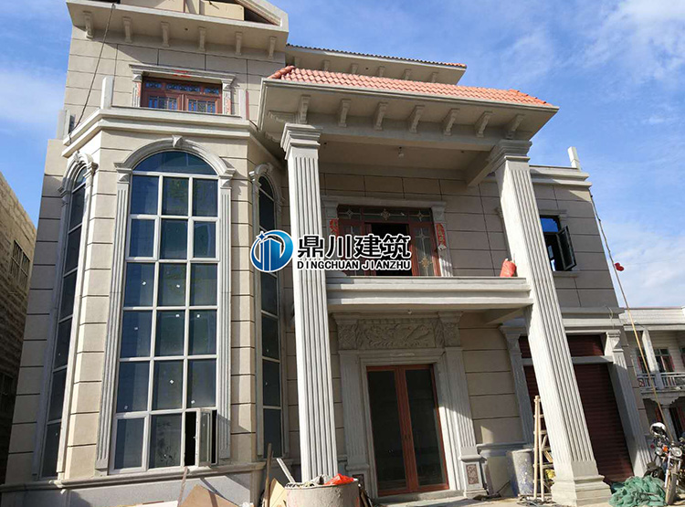 此款建房實例精美脫俗,藍色的弧形落地窗搭配米色的外墻,特有的質感詮釋的淋漓極致。整個外墻裝飾給人感覺很沉穩、大氣。而且落地窗使得整個房子的氣場大增。高貴而時尚。方形的羅馬柱搭配起來很顯恢宏!