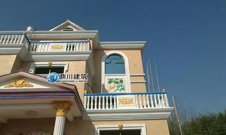 該案例的外觀效果建出來大氣精致,相對于效果圖來說毫不遜色,金色山花和欄桿上藍(lán)色的運(yùn)用讓房子很有特色,并且大膽的使用了裝飾畫,整體更顯超凡脫俗!