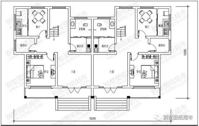 此款新農村三層雙拼別墅圖紙編號: DC0183,開間18.24米,進深10.68米,占地面積220平方米,建筑面積508平方米,主體造價在32-38萬。