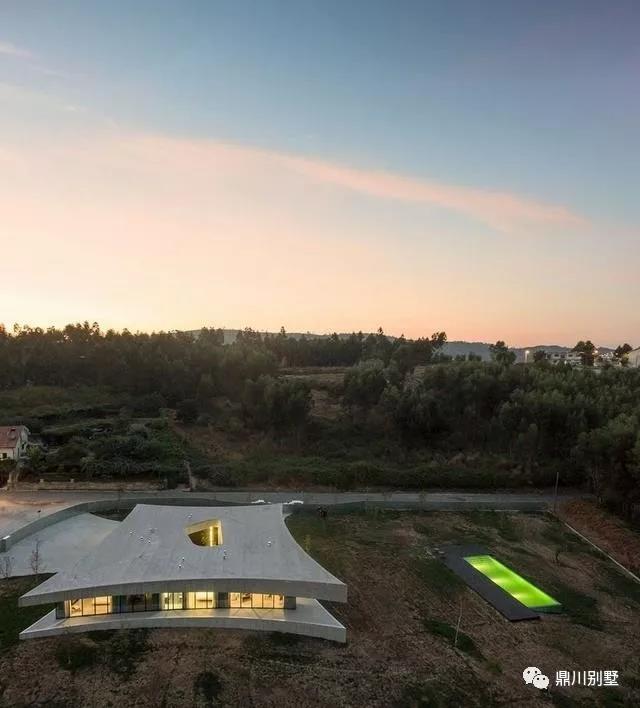 這座340平米的混凝土住宅形狀卻很有機,曲線形的屋頂輪廓讓整座建筑顯得優雅輕盈。從高處看,就像一座混凝土帳篷,其中央是一個露天庭院,一扇朝上的窗,絕對讓你望見星斗……“支撐”起這片輕盈混凝土屋頂的是內部一道道曲折的混凝土墻,剩下的隔墻全部采用了精致的落地玻璃窗將視野全部打開,甚至在轉角處都做了弧形處理,弧形的玻璃讓視線沒有任何死角。