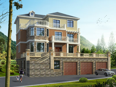 HY045三層帶車庫農村別墅設計圖效果圖,鼎川建筑三層農村別