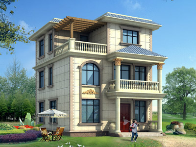 J0187三層帶露臺別墅圖紙效果圖,農村三層自建別墅設計圖