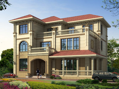 HY050歐式三層復式別墅設計圖外觀效果圖,鼎川建筑三層歐式