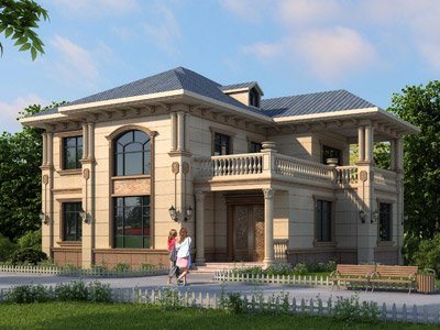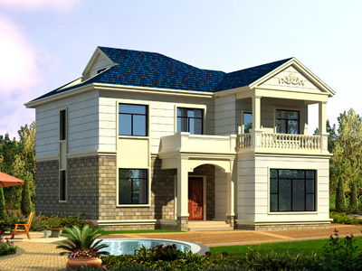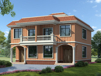 J0178歐式二層帶露臺農村別墅外觀效果圖,鼎川建筑二層歐式