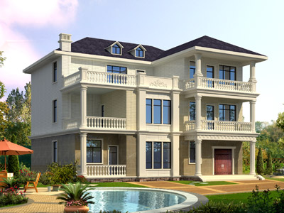 L0269三層帶露臺歐式別墅設計外觀效果圖,農村歐式自建別墅