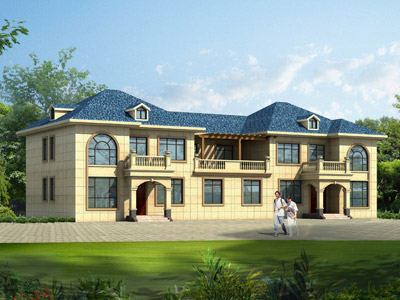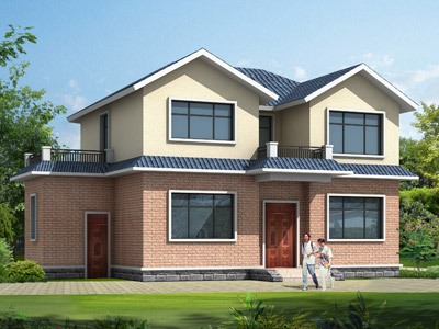 E0259二層農村兄弟雙拼別墅外觀效果圖,鼎川建筑雙拼自建小