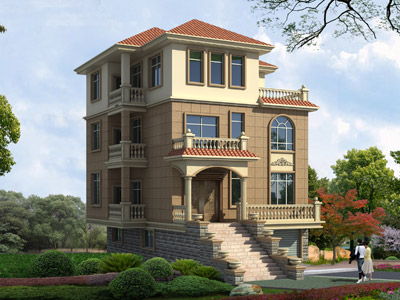 ZW025四層帶車庫別墅設計圖外觀效果圖,鼎川建筑四層別墅圖