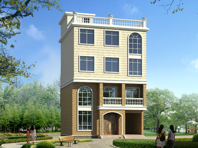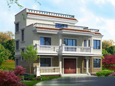 J0184三層帶露臺平屋頂歐式別墅外觀效果圖,鼎川建筑三層別