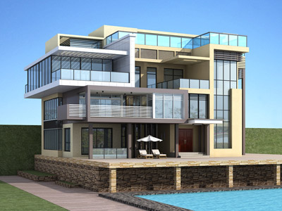 L0188帶游泳池的現代風格大別墅設計效果圖,鼎川建筑外觀定