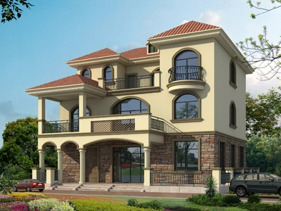 HY014漂亮的歐式三層帶涼亭別墅設計效果圖,鼎川建筑別墅私