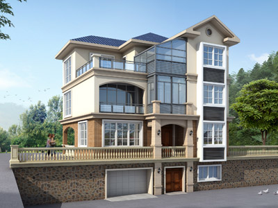 D0252歐式三層帶車庫別墅外觀效果圖,鼎川建筑私人定制別墅