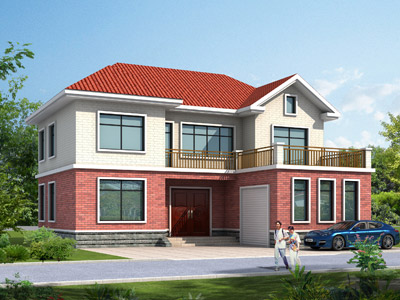 FS005二層帶車庫農村自建房設計圖效果圖,鼎川建筑二層別墅