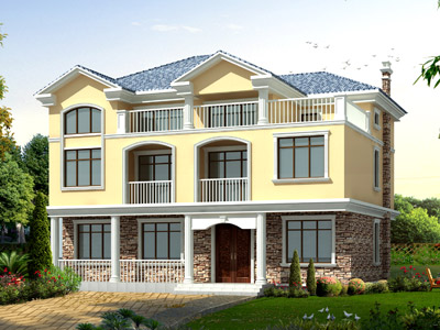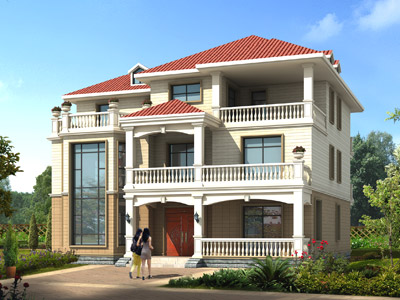 ZH005歐式三層帶露臺別墅設計圖效果圖,鼎川建筑歐式別墅設