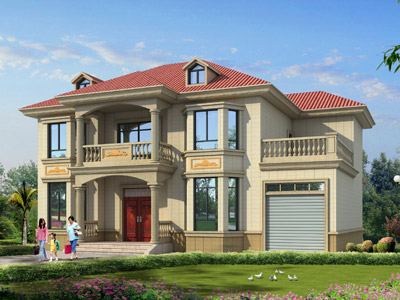 L0225農村二層帶車庫小別墅圖紙外觀效果圖,鼎川建筑私人定