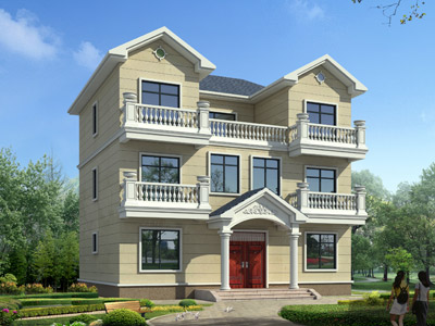D0215新農村三層帶露臺小別墅設計圖外觀,農村兩層半別墅定