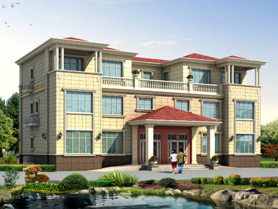 L0215三層歐式別墅設計圖外觀效果圖,鼎川建筑別墅私人定制
