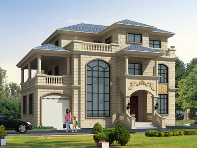 L0227歐式三層帶車庫別墅設計外觀,鼎川建筑三層別墅私人定