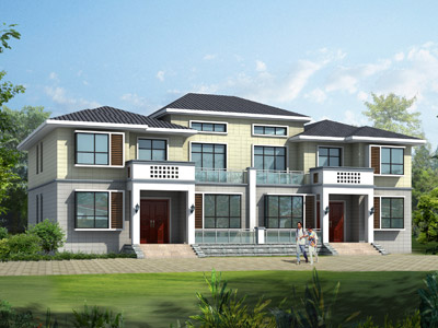 D0258二層帶閣樓雙拼別墅外觀效果圖,鼎川建筑雙拼別墅設計