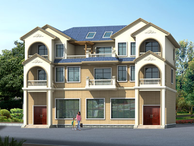 YZM006三層雙拼大別墅設計圖外觀效果圖,鼎川建筑雙拼別墅