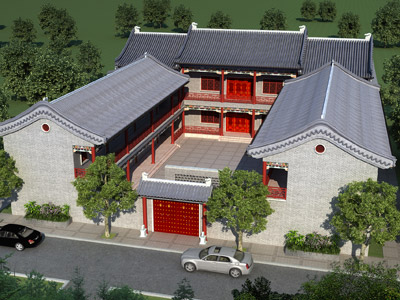 108C二層四合院設(shè)計(jì)圖外觀效果圖,三合院四合院私人定制設(shè)計(jì)