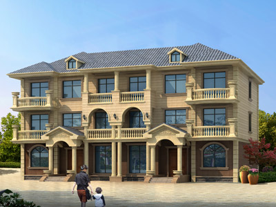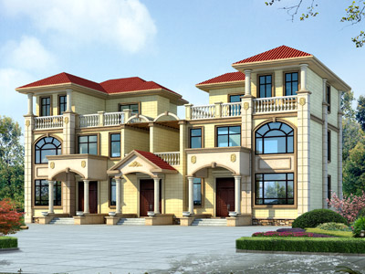 XT083歐式三層雙拼別墅設(shè)計(jì)圖外觀效果圖,鼎川建筑三層雙拼