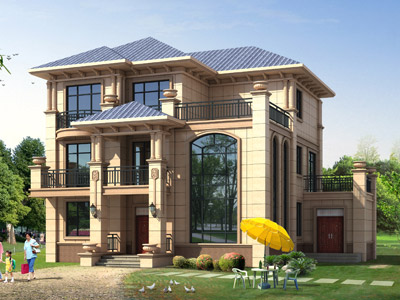 L0312A三層美式小別墅外觀效果圖,三層別墅私人定制設(shè)計(jì)圖