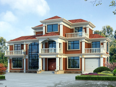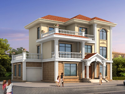 HC030大氣三層帶車庫(kù)別墅圖紙外觀效果圖,三層自建房別墅圖