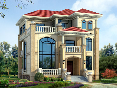 E0142豪華三層歐式別墅設(shè)計(jì)外觀效果圖,鼎川建筑私人定制歐