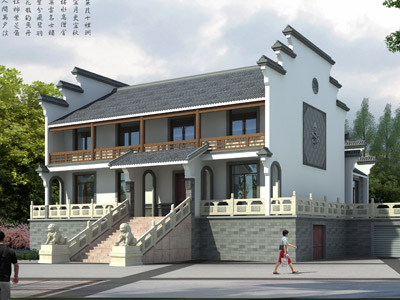 J083帶架空層的三層中式房子設(shè)計(jì)圖效果圖,鼎川中式別墅設(shè)計(jì)