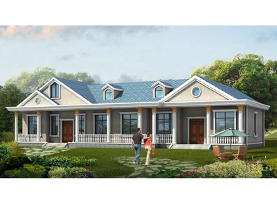 L0201一層雙拼別墅設(shè)計(jì)圖效果圖,農(nóng)村一層雙拼平房設(shè)計(jì)圖