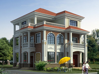 L065三層帶露臺別墅設計外觀效果圖,三層別墅設計