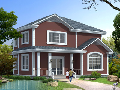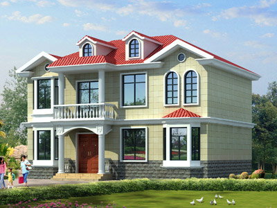 M0127獨特的二層農村小別墅設計圖,兩層小別墅外觀效果圖