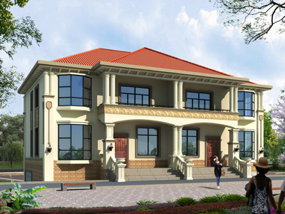 D004地中海風格二層雙拼別墅設計效果圖,農村雙拼別墅設計