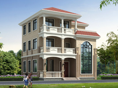 L090三層帶露臺農村別墅設計效果圖,三層別墅設計