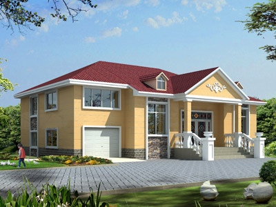 W0125新農村三層帶車庫別墅外觀效果圖,三層別墅設計圖