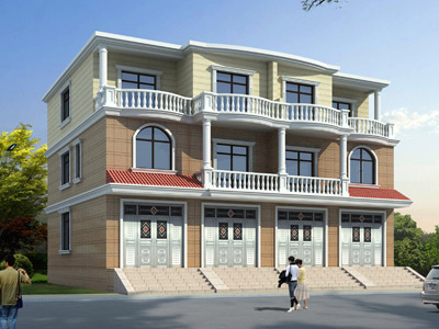 E040帶門面的三層雙拼別墅設計圖,雙拼別墅圖紙效果圖