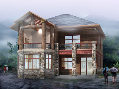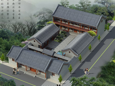 E028二層四合院設計外觀效果圖,農村四合院設計圖紙