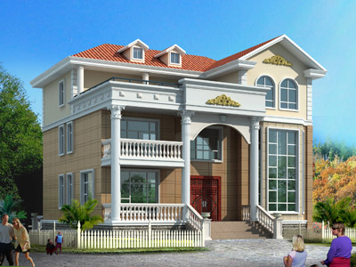 E042歐式三層帶露臺別墅圖紙效果圖,復式樓別墅設計