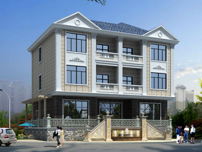 M0136三層半帶門面的別墅外觀效果圖,門面房設計圖,三層別