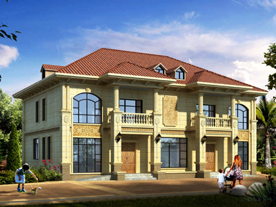 XC035歐式兩層雙拼別墅設(shè)計(jì)圖紙外觀效果圖,鼎川建筑二層雙