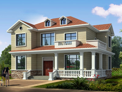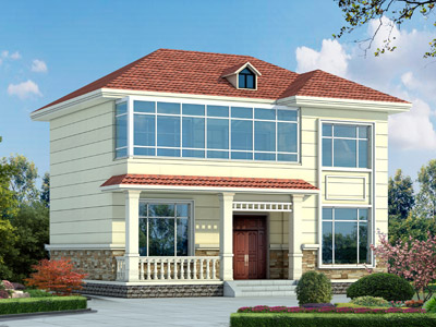 XC037二層帶露臺(tái)農(nóng)村自建別墅外觀效果圖,鼎川建筑二層別墅
