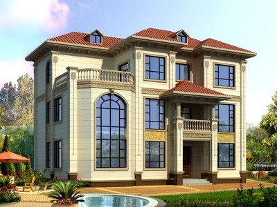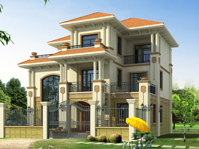ZH015三層鄉(xiāng)村別墅設(shè)計(jì)圖外觀效果圖,歐式別墅設(shè)計(jì)圖紙效果