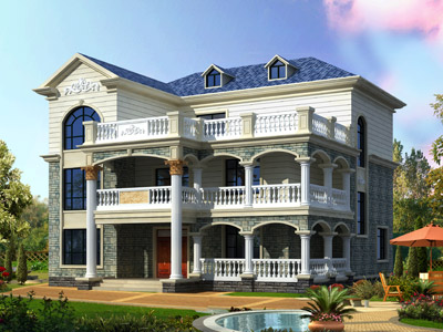 JL012三層帶露臺(tái)歐式別墅設(shè)計(jì)圖效果圖,鼎川建筑三層歐式別